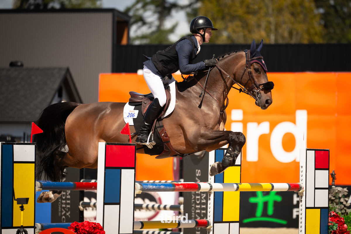 Tbird – Langley, BC — Heartvit ZH made the transition from FEI into the hunter ring last year and has taken to his new job quite well. The 12-year-old Czech Warmblood stallion (Forever van de Noordheuvel x Caesar) has won two consecutive hunter derbies in his new lifestyle, topping Saturday’s Amy Brattebo Real Estate Hunter Derby at the April Season Opener.
