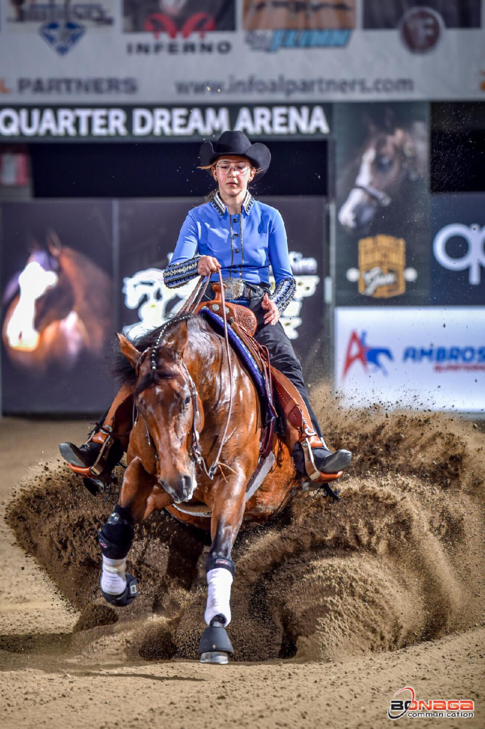 A imporsi nella Level 4 provvisoria con un punteggio di 216 è stata Anna-Maria Zehetbauer in sella a SS Gunnafreezeya, figlia dello stallone da 3 milioni di dollari NRHA SG Frozen Enterprize e Gunnaoutfoxya. La promettente cavalla, cresciuta da Silver Spurs Equine, è di proprietà di Zeidelhof Reining Horses, che l’ha anche nominata, e proviene dall’asta NRHA/Markel Elite Yearling Sale.